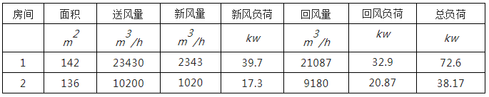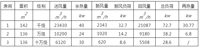 同理可計算其他幾間潔凈室的冷量同再熱量。