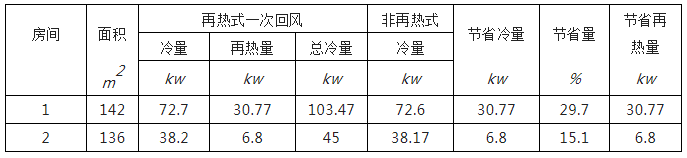 兩種空氣處理方式能量消耗對比如下表所示: